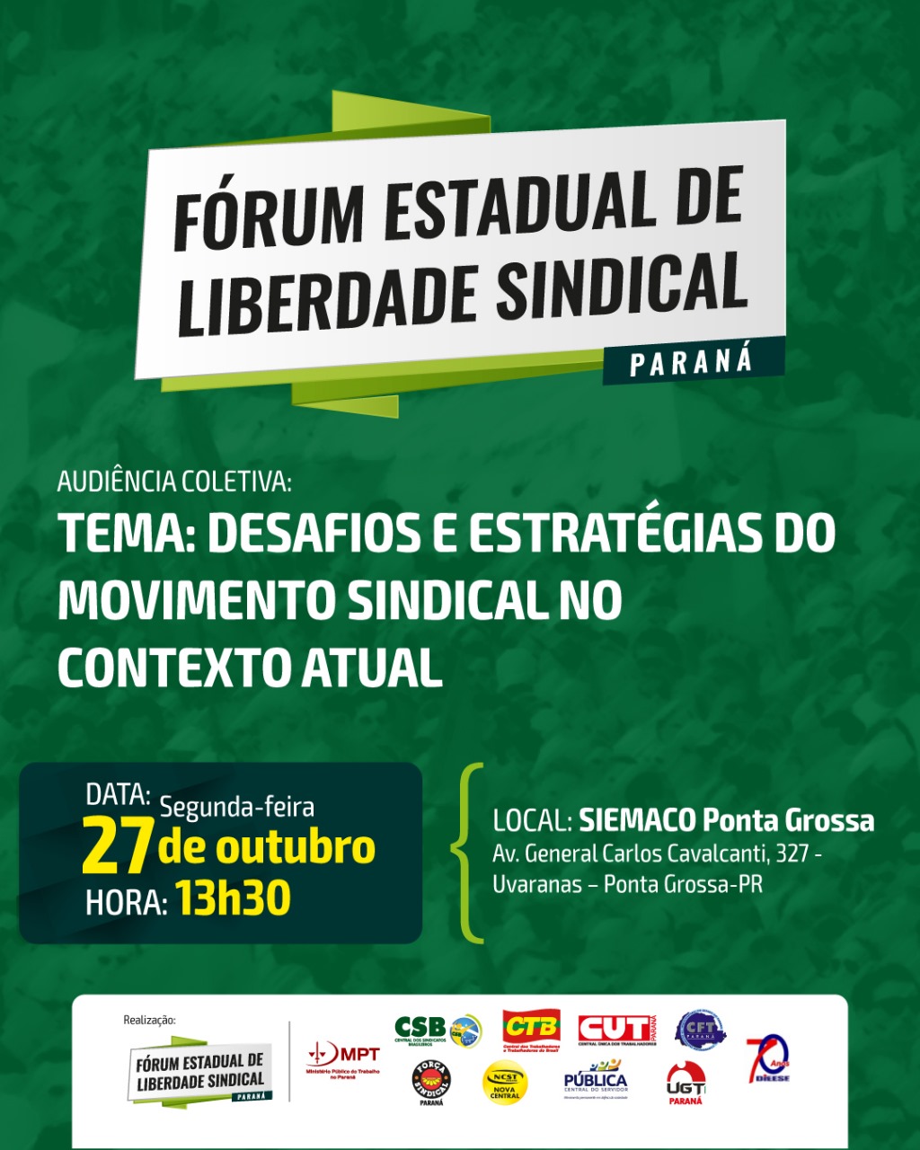 FEEB-PR, UGT-PR e sindicato de Ponta Grossa participam do Fórum Liberdade Sindical