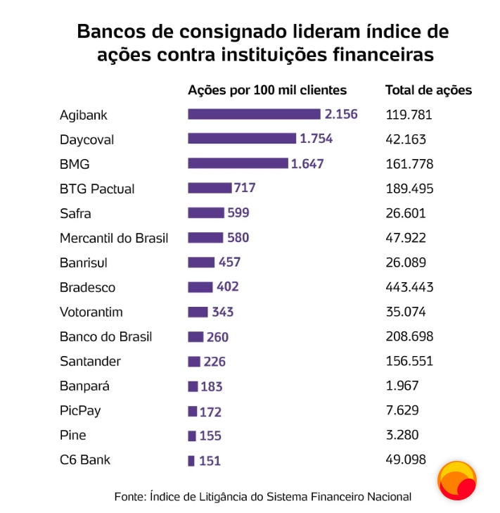 Agibank, que lidera lista de instituições financeiras mais acionadas na Justiça por clientes - Imagem: Adobe Stock -Bancos citados como líderes em ações de clientes reagiram a estudo da Faculdade de Direito da USP Ribeirão Preto, com explicações e críticas à metodologia. (Por Mariana Barbosa e Marina Giannini Colunista do UOL e do UOL)