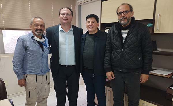 Na foto Ivanildo Claro da Silva, Flávio Jean Garlet, Gladir Antonio Basso e Antonio Ribas Maciel Jr.Na última terça-feira (18), o Sindicato dos Bancários de Cascavel e Região recebeu a visita do superintendente regional do Banco do Brasil, Flávio Jean Garlet, que esteve acompanhado do consultor da Gerev Cascavel/PR Gustavo Ripp. Eles foram recepcionados pelo presidente do Sindicato, Gladir Basso (também presidente da Federação dos Bancários do Paraná) e dos diretores Antonio Ribas Maciel Júnior e Ivanildo Claro da Silva.