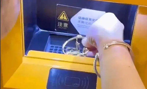 Um shopping em Xangai apresentou um caixa eletrônico capaz de comprar joias de ouro diretamente dos usuários, sem a necessidade de qualquer documentação. Desenvolvido pelo grupo chinês Kinghood, o equipamento avalia, pesa e derrete as peças, analisa a pureza do metal e transfere o valor correspondente para a conta bancária do vendedor em até 30 minutos. O sistema aceita itens acima de três gramas e com pureza mínima de 50%.