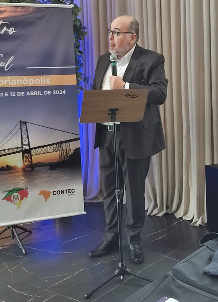 Presidente da Contec Lourenço do Prado falando aos presentes Matusalém dos Santos - Palestrante | Sandro Lunard - Palestrante |