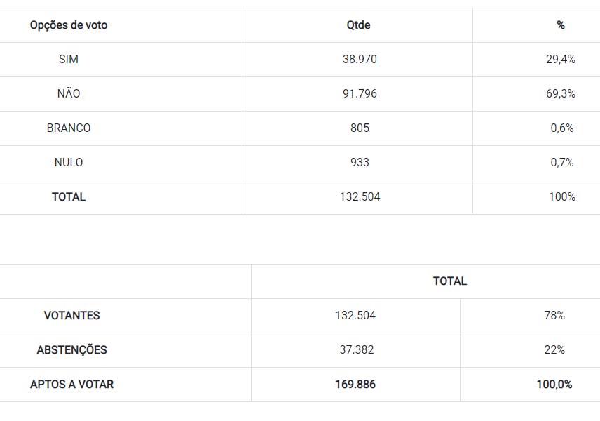Mais de 91 mil votaram não