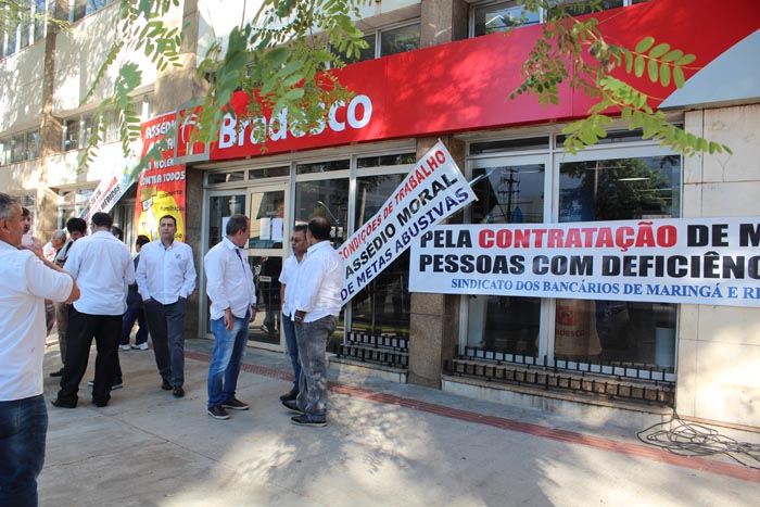 Por tudo isso, pedimos o apoio dos bancários e da sociedade para este ato, que visa garantir direitos dos trabalhadores bancários e melhorar o atendimento do Banco Bradesco para com toda a população. (Fonte: Seeb Maringá)